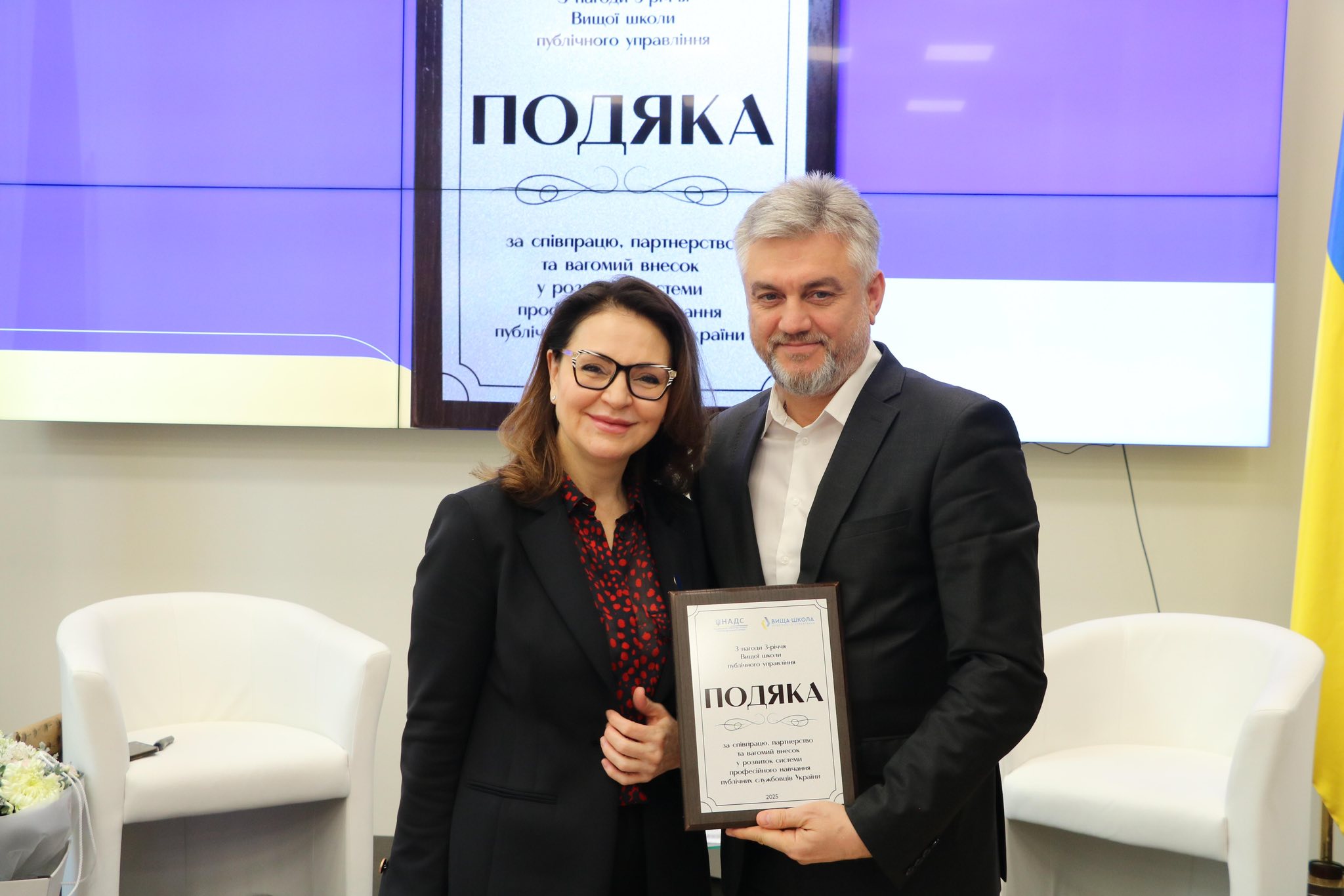 Також Вища школа відзначила партнерів і членів Наглядової ради за вагомий внесок у розвиток професійного навчання, серед яких — Профспілка працівників державних установ України.